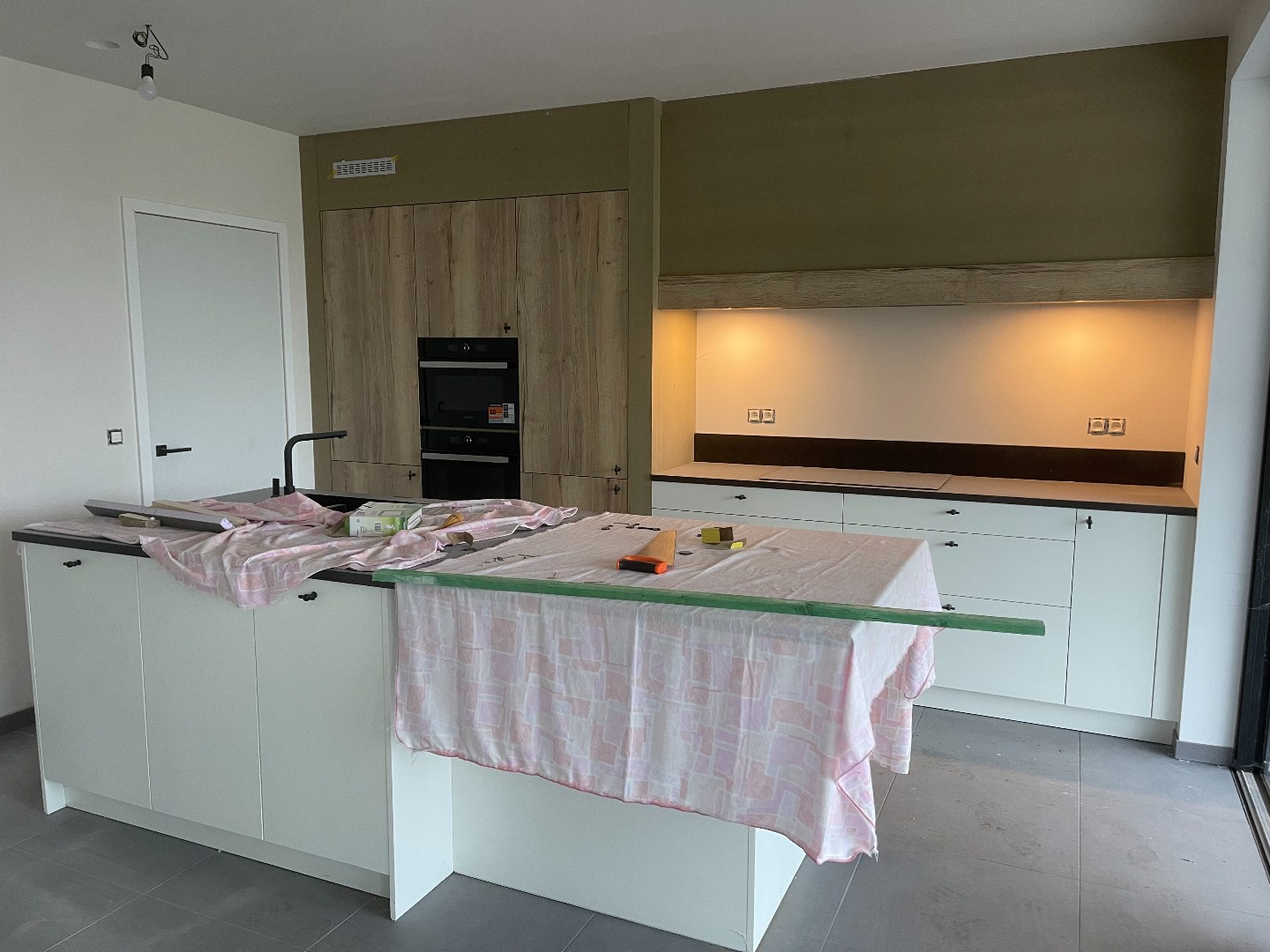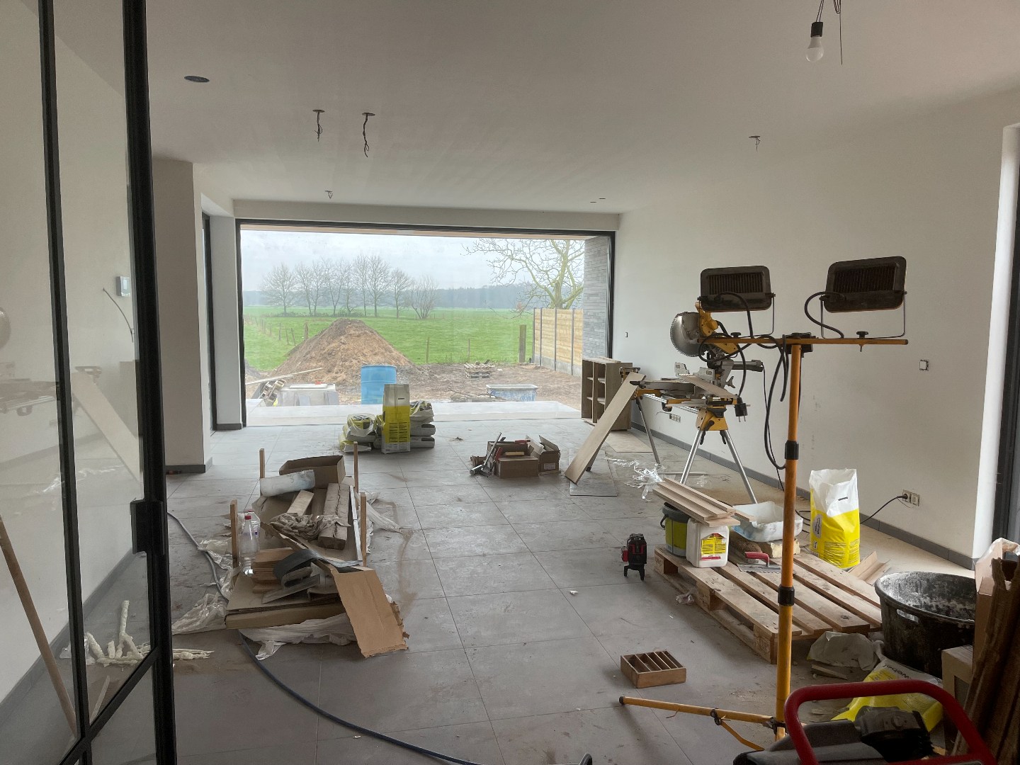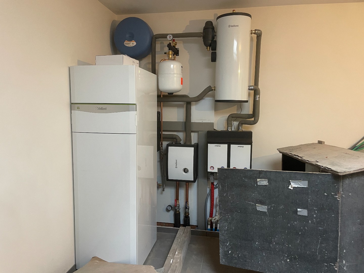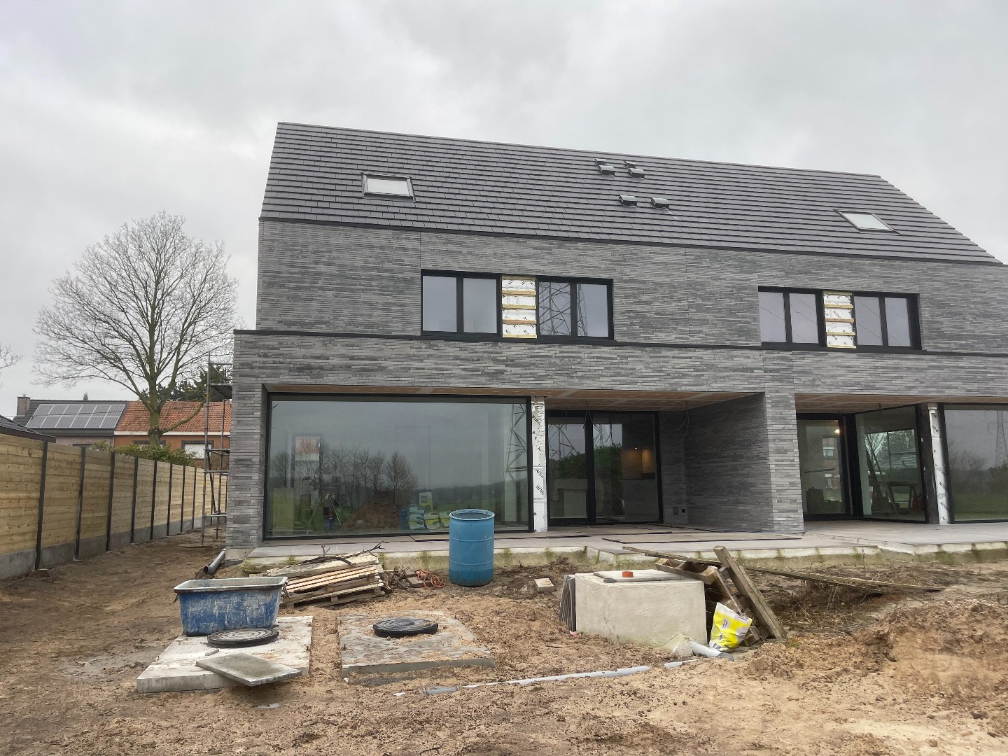 Voor de verwarming wordt er een warmtepomp Vaillant voorzien (hiervoor zijn een 5 putboringen tot 48 m diepte uitgevoerd), zonnepanelen, uitgebreid ventilatiesysteem. Er is ook nog een grote kelderberging. Binnendeuren, sanitair, warmtepomp, oprit, elektrisch plaatjes -schakelaars - stopcontacten - inbouwspots worden in de eerstkomende weken geplaatst.