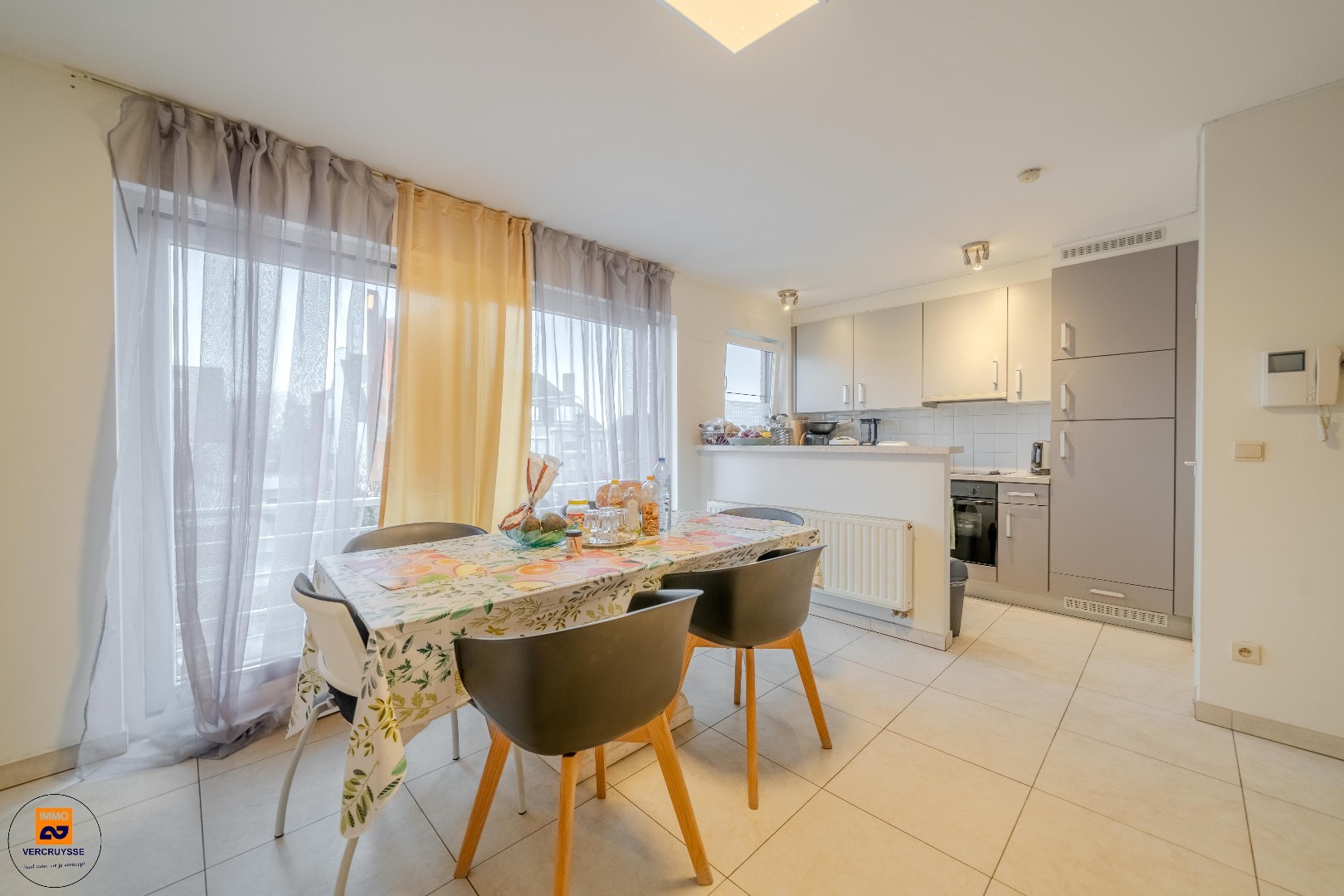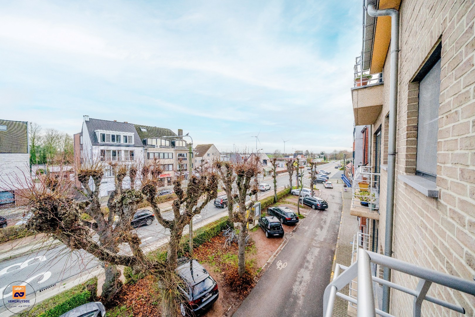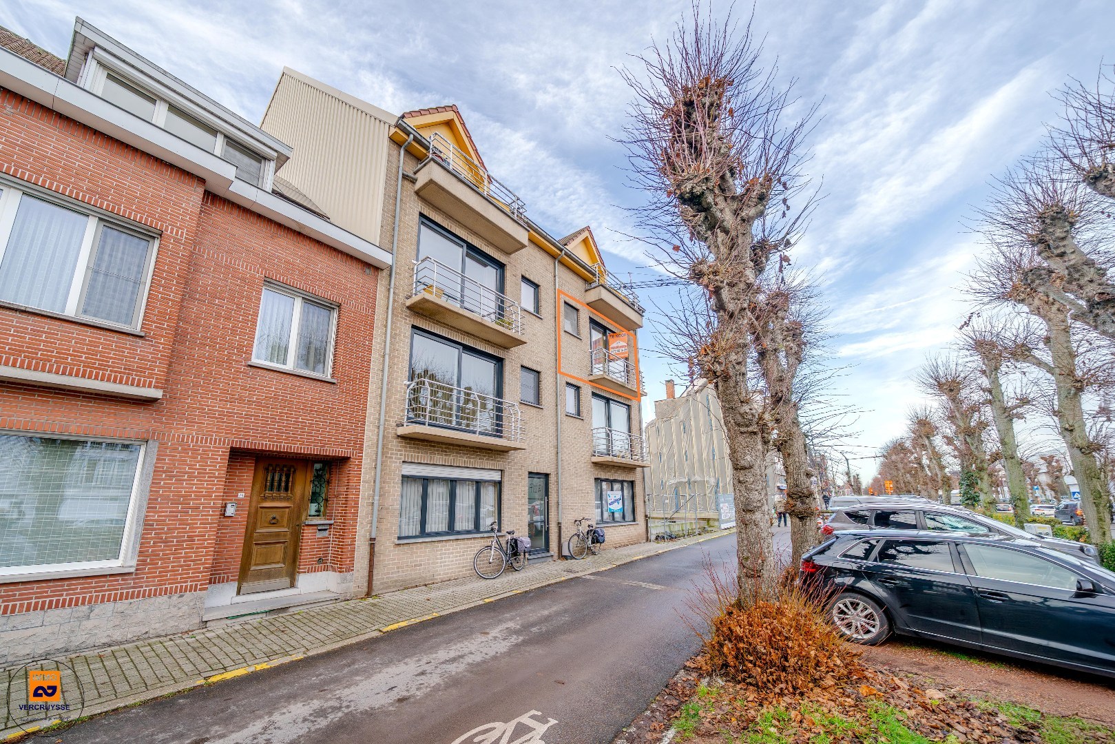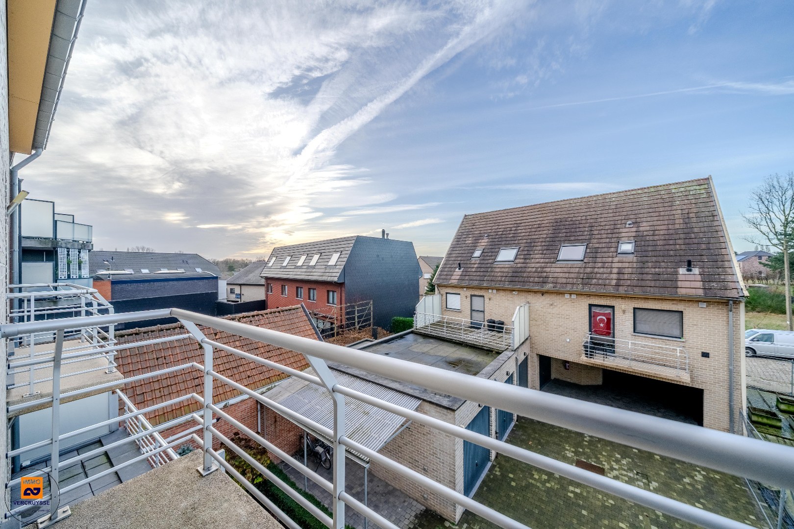 Indeling: inkomhal, lichtrijke leefruimte met balkon voor- en achteraan, open keuken met aansluitende berging, gastentoilet, 2 slaapkamers, badkamer.