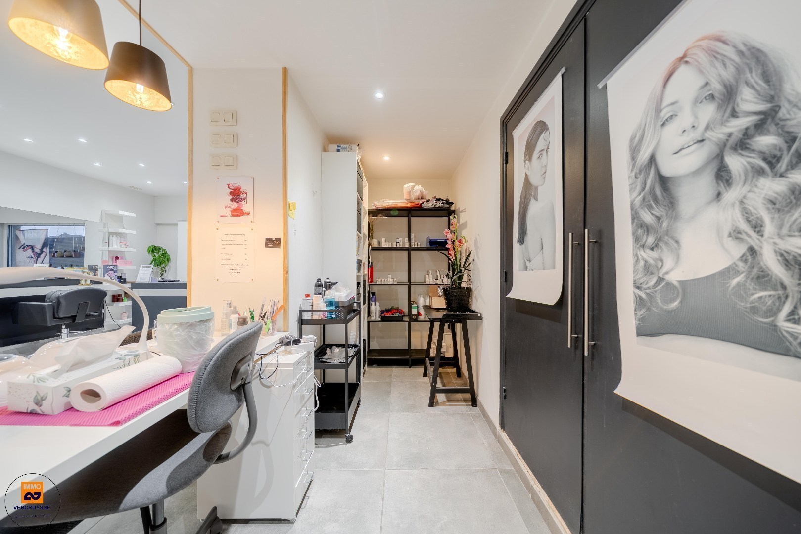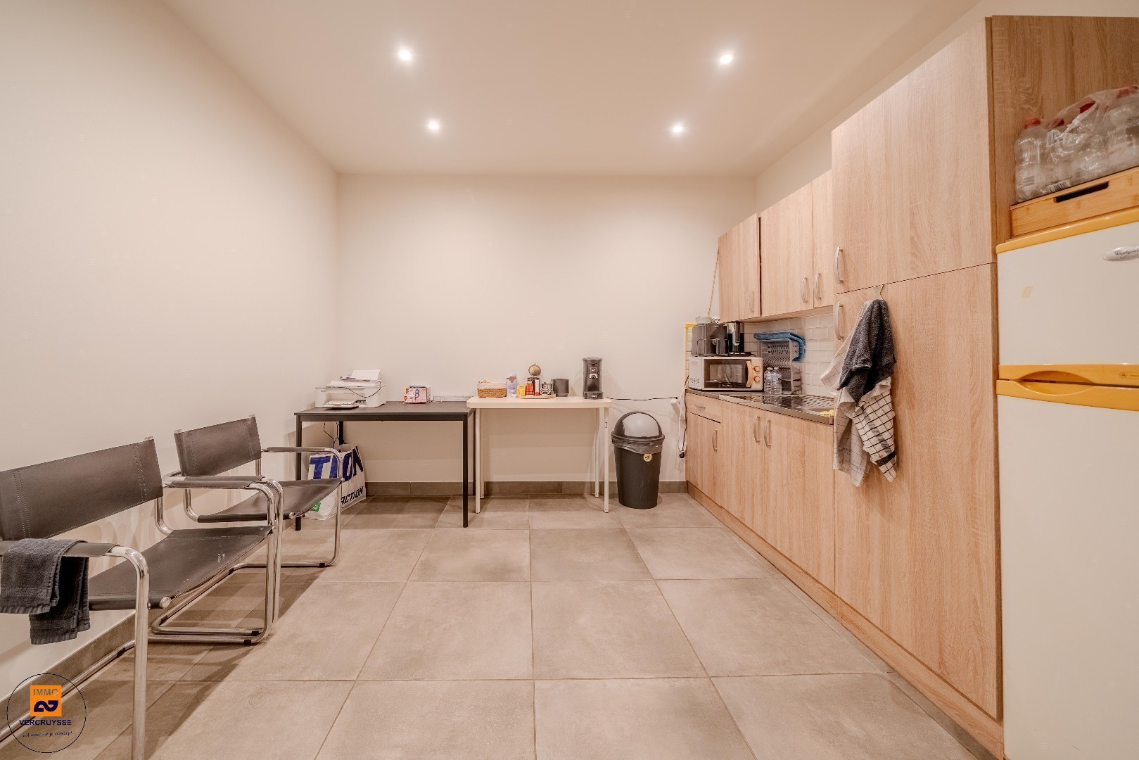 Indeling: inkom, ruime winkelruimte/showroom/kantoorruimte met eventuele wachtplaats of extra bureel, afzonderlijk toilet, keuken, bergplaats.