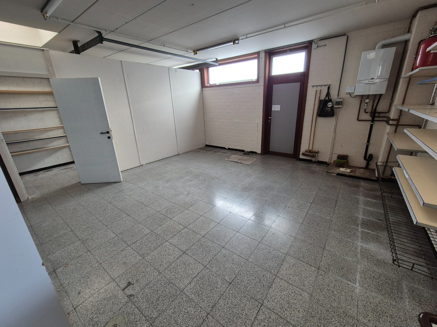 Beneden is er een grote handelsruimte, magazijn. Kan ingedeeld worden in praktijkruimtes, kantoren of winkelpand.