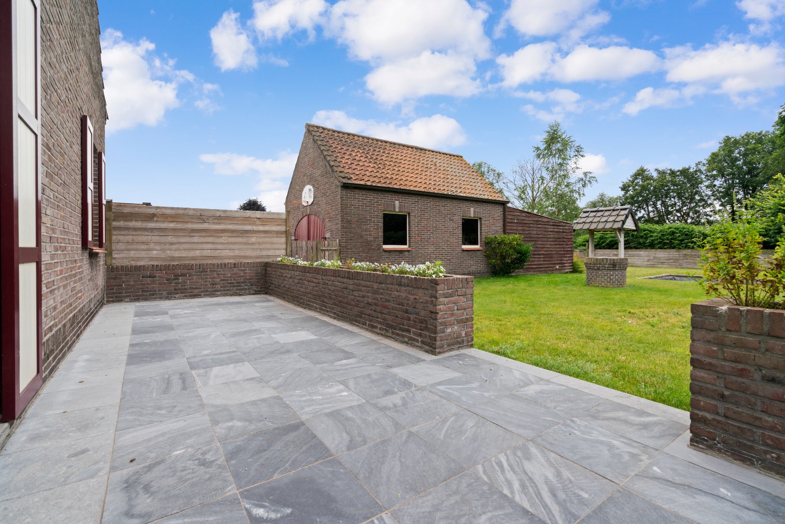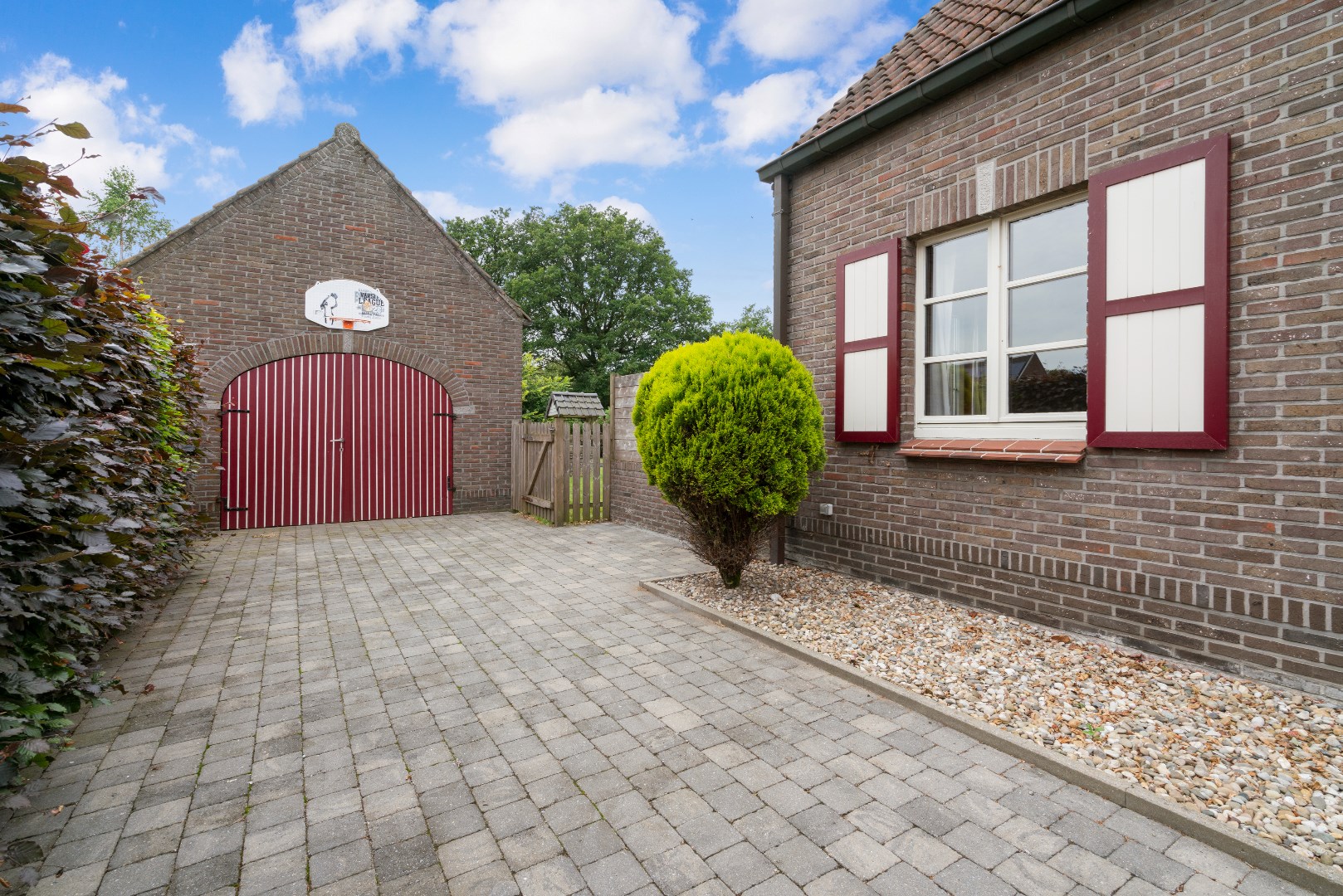 Aan de buitenzijde beschikt de woning over een grote mooi aangelegde tuin (met veel rust en open zicht), aangelegede oprit in klinkers, een extra garage met zolderberging, extra buitenberging.