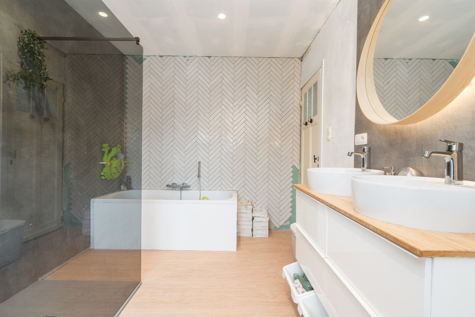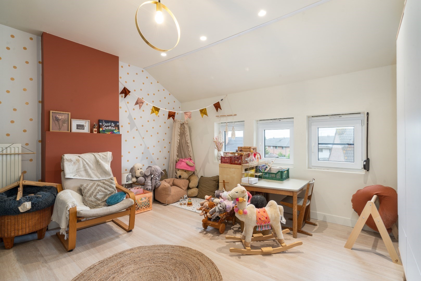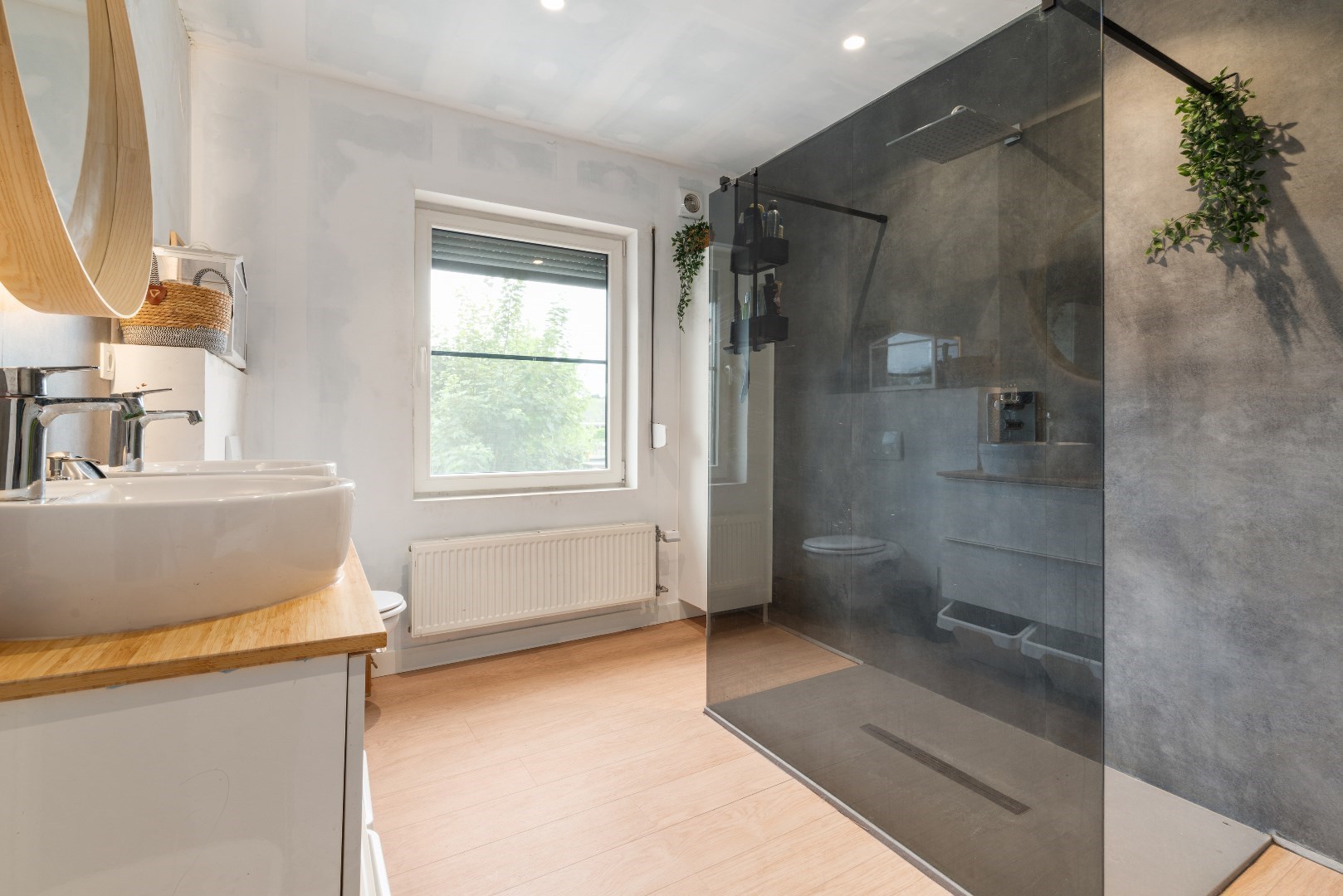 Boven vinden we 3 ruime slaapkamers (waarvan 1 ingericht in de zolder) en een volledig vernieuwde badkamer met grote inloopdouche en ligbad.
