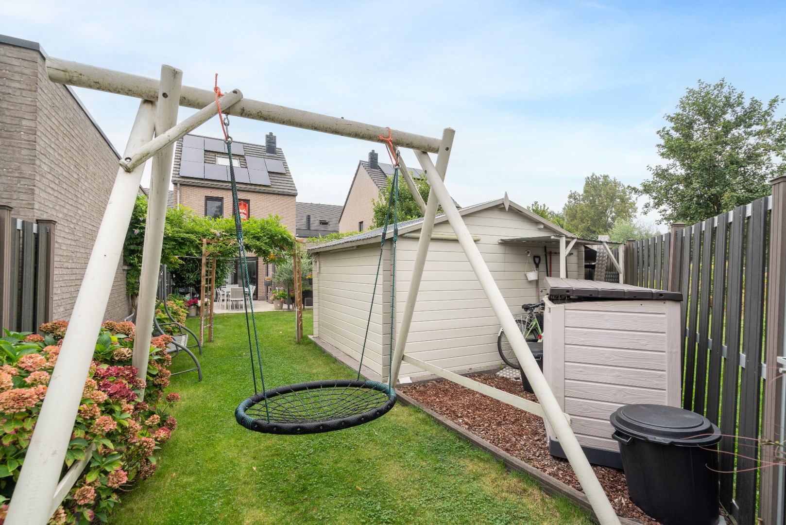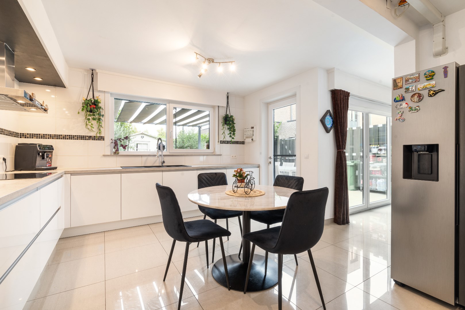 De woning beschikt over een lichtrijke woonkamer met open ingerichte keuken, 4 slaapkamers, nieuwe badkamer, toilet boven en beneden en ruime garage. Buiten vinden we een privatieve tuin met terras en buitenruimte, alsook een zij-ingang naar de tuin.