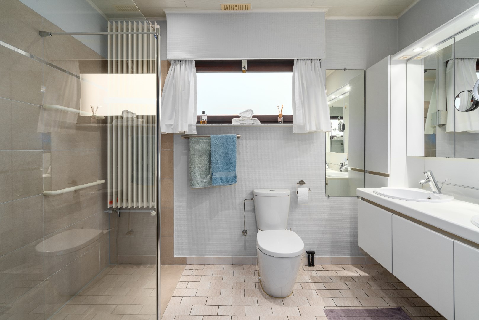 Via de inkomhal met gastentoilet, die ons al snel naar de mooie leefruimte brengt met veel lichtinval en de geplaatste gashaard (2014). Verder gaan we naar de keuken (inclusief aanwezige toestellen zoals nieuwe inductiekookplaat, ingebouwde koelkast met vriesvak, vaatwas, oven, microgolf,...) en de aangebouwde veranda (met screens en zonnewering) waar men extra kan genieten van de tuin. Met de 3 slaapkamers en ruime zolder (met 4 velux ramen die tevens ook voorzien zijn van rolluiken. en screens) bieden we heel wat mogelijkheden naar extra slaapkamers toe, alsook de badkamer die voorzien is van inloopdouche, dubbele wastafel en toilet.