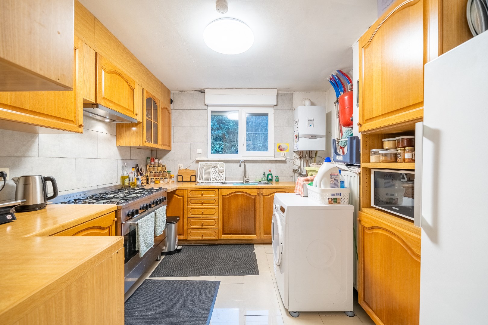 In de Spoorwegstraat, aan tramlijn, bushaltes, dichtbij het station van Evergem, een volledige gerenoveerde alleenstaande woning met tuin, garage.