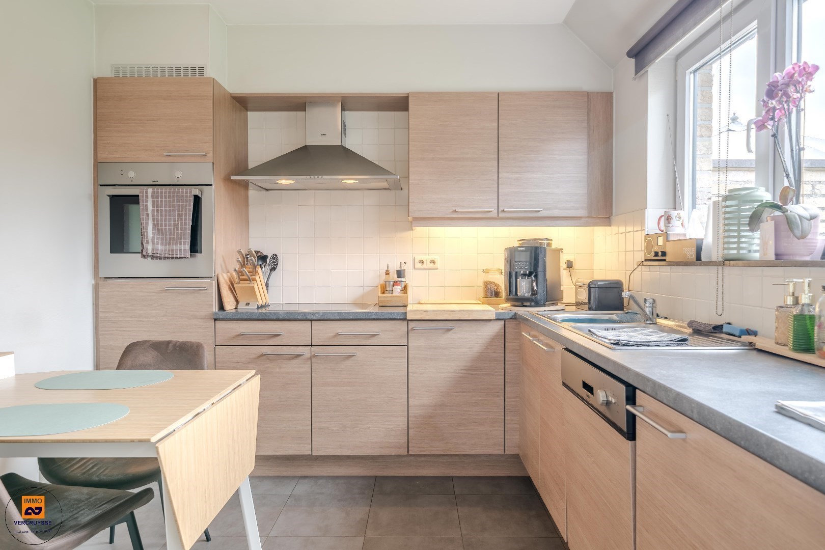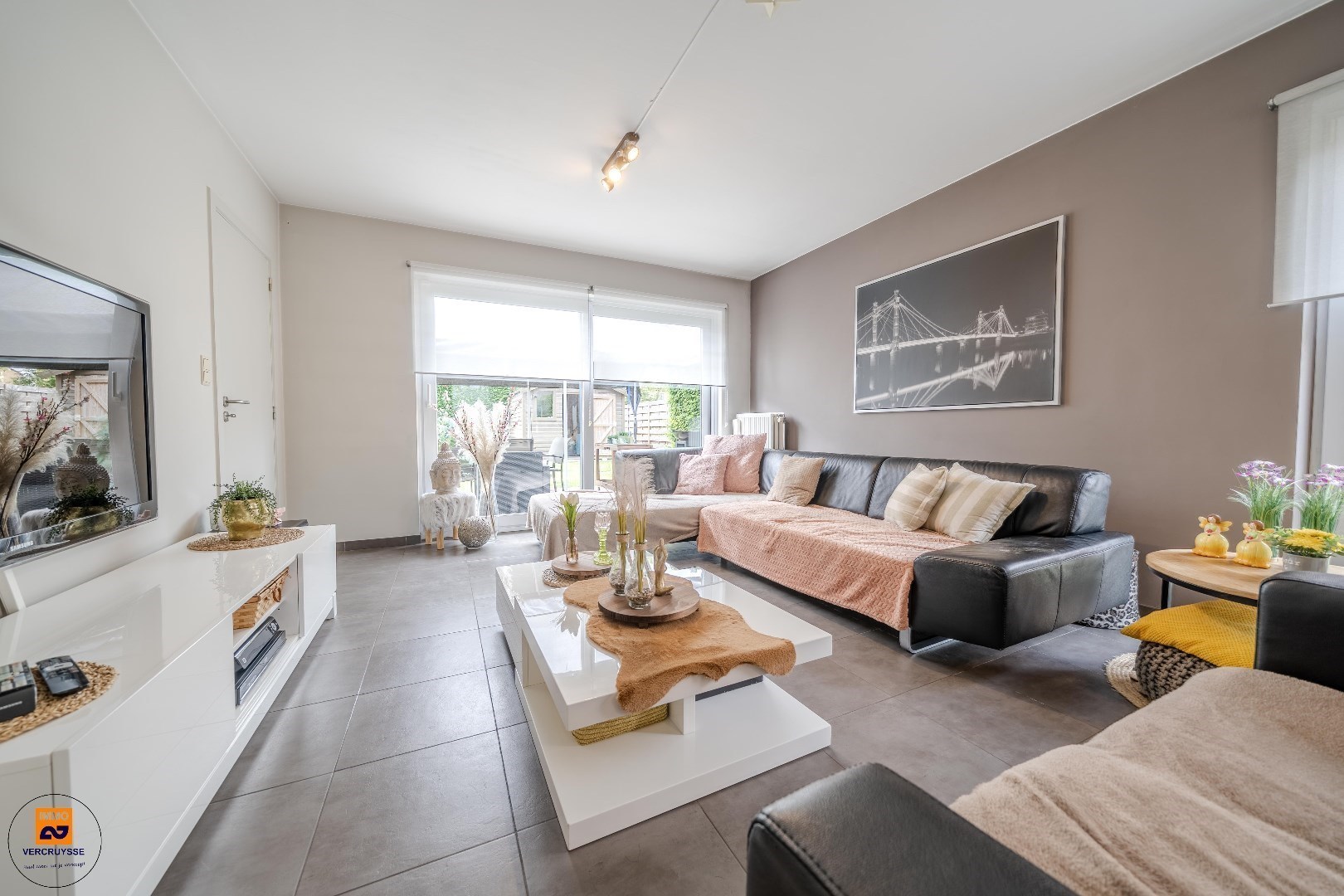 Ruime en comfortabele Indeling als volgt : binnenkomen in een lichtrijke inkomhal. Hier is ook een gastentoilet en vestiairemogelijkheden. Een open woonkamer voelt ruim en gezellig aan, en loopt over in een volledig uitgeruste keuken. Via het grote schuifraam heb je rechtstreeks toegang tot het zonnige terras en de fraai aangelegde tuin.